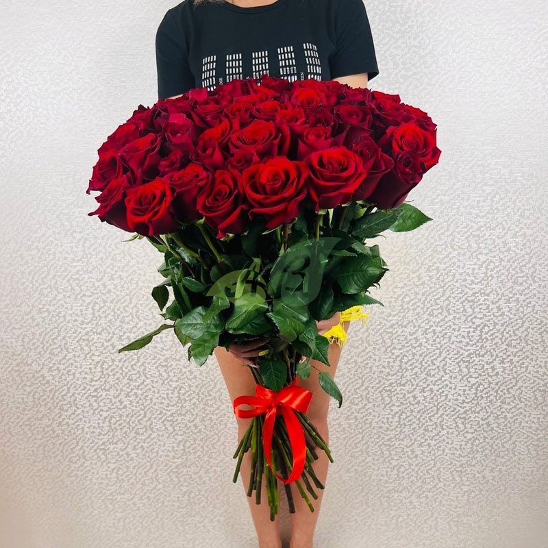Красные розы на длинной ножке в букете издавна считались символом любви и уважения. Роскошный красный бутон подчёркивает изысканность и великолепие каждого цветка. Ни одно сердце не сможет устоять против такого шикарного букета!