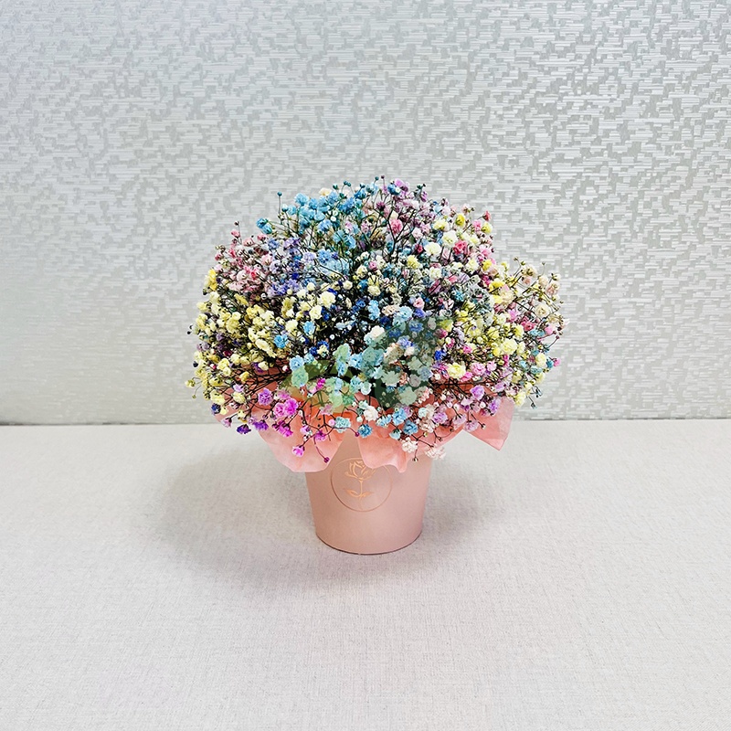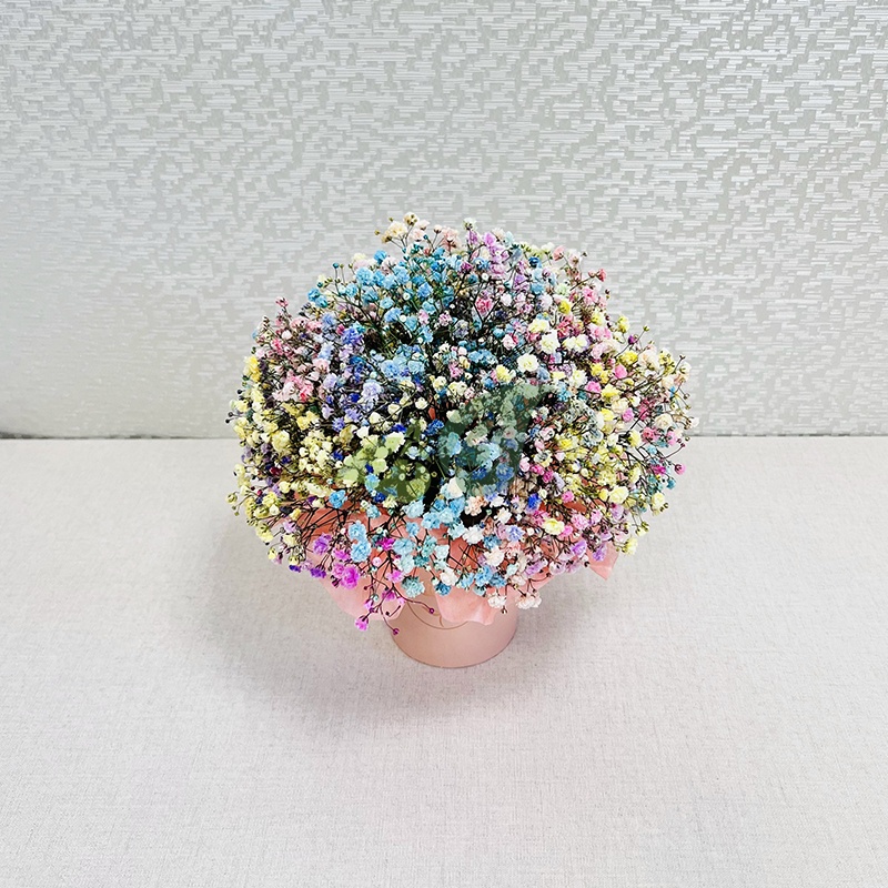 Состав и характеристики композиции в коробке "Цветная гипсофила":